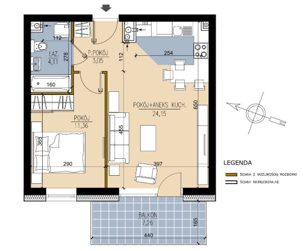 Powierzchnia 42,87 m2